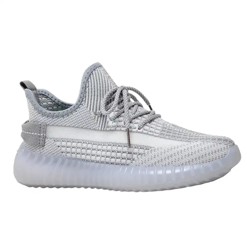 Designed for everyday comfort, these ice-grey knit sneakers feature a breathable, sock-like upper that flexes with your foot for a snug and lightweight fit. The thick, textured outsole provides stable support with soft cushioning and responsive rebound—ideal for commuting, walking, travel, and long days on your feet. The clean silver-white tone looks fresh and premium, making it easy to style with any outfit.